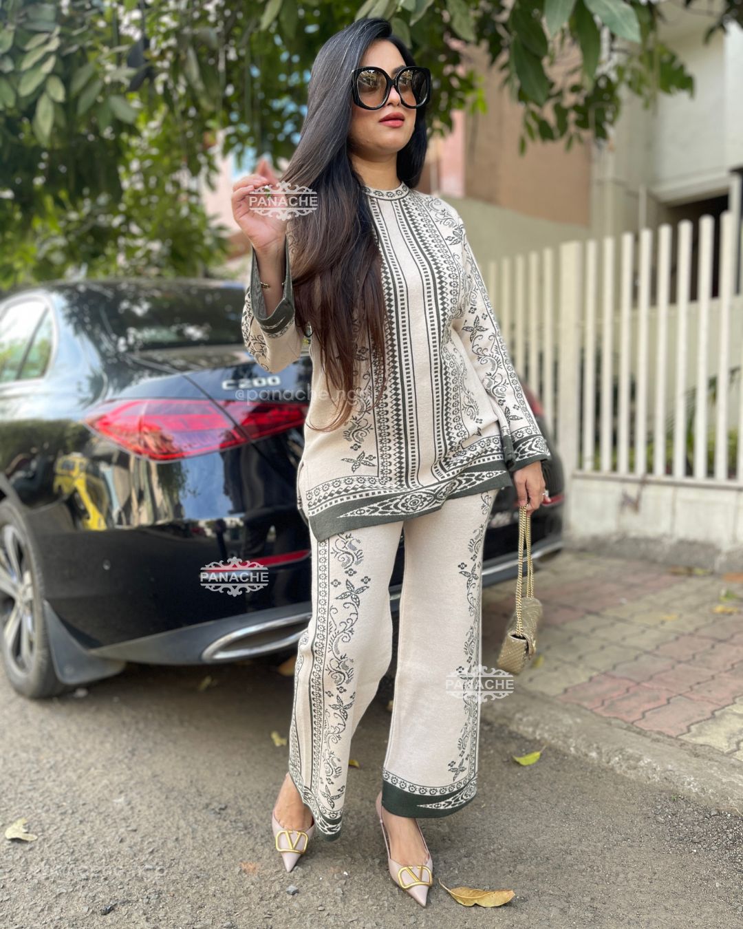 🟣 Embroidery coord with pockets in pants, stretchable knitt
