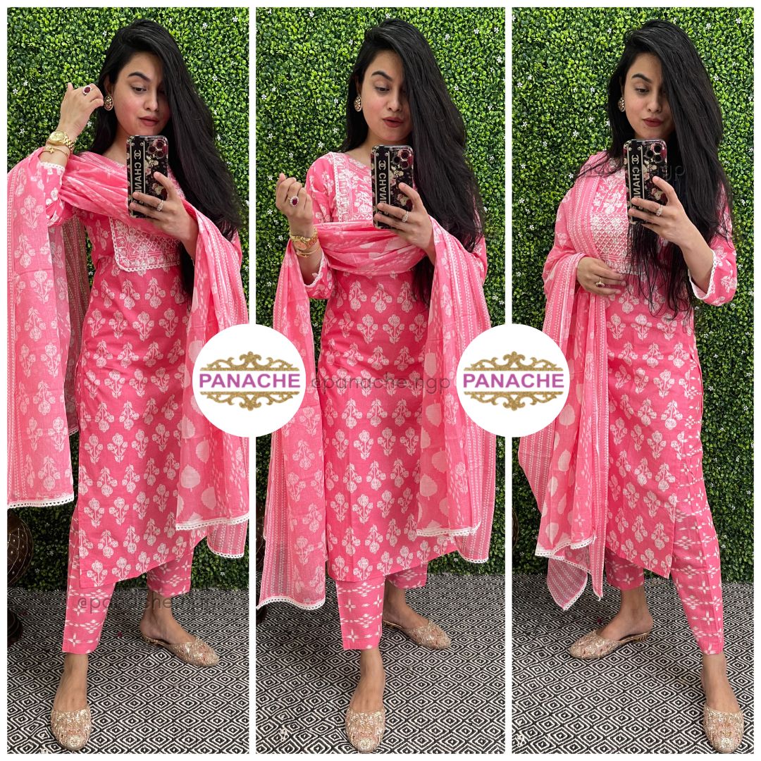 🟣 Baby pink budget set for daily wear with soft mul dupatta