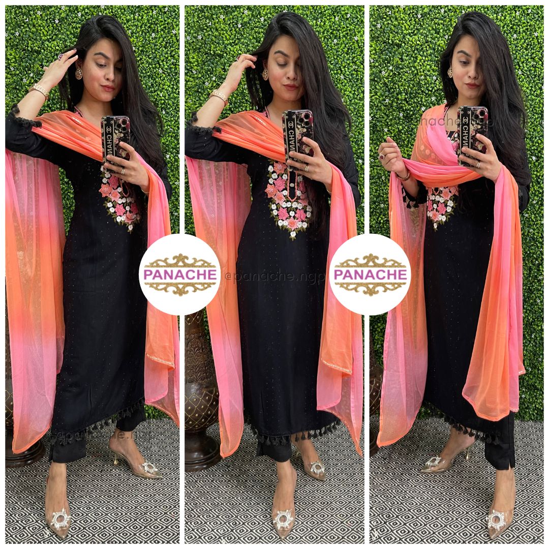 🟣 Details - 3D floral embroidery on yolk, fundaas on sleeves, daman of kurta & sled sequin on kurta ( front back)