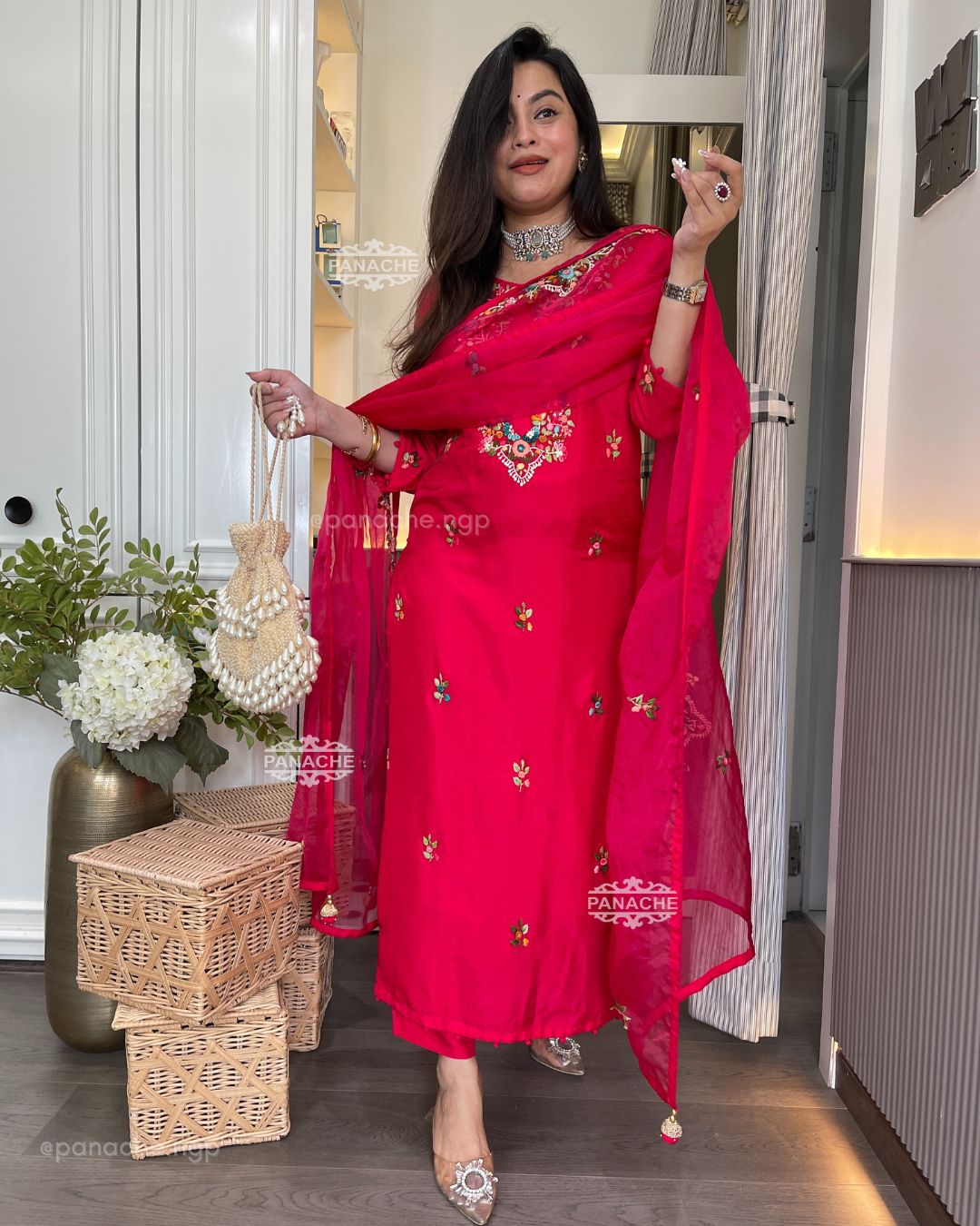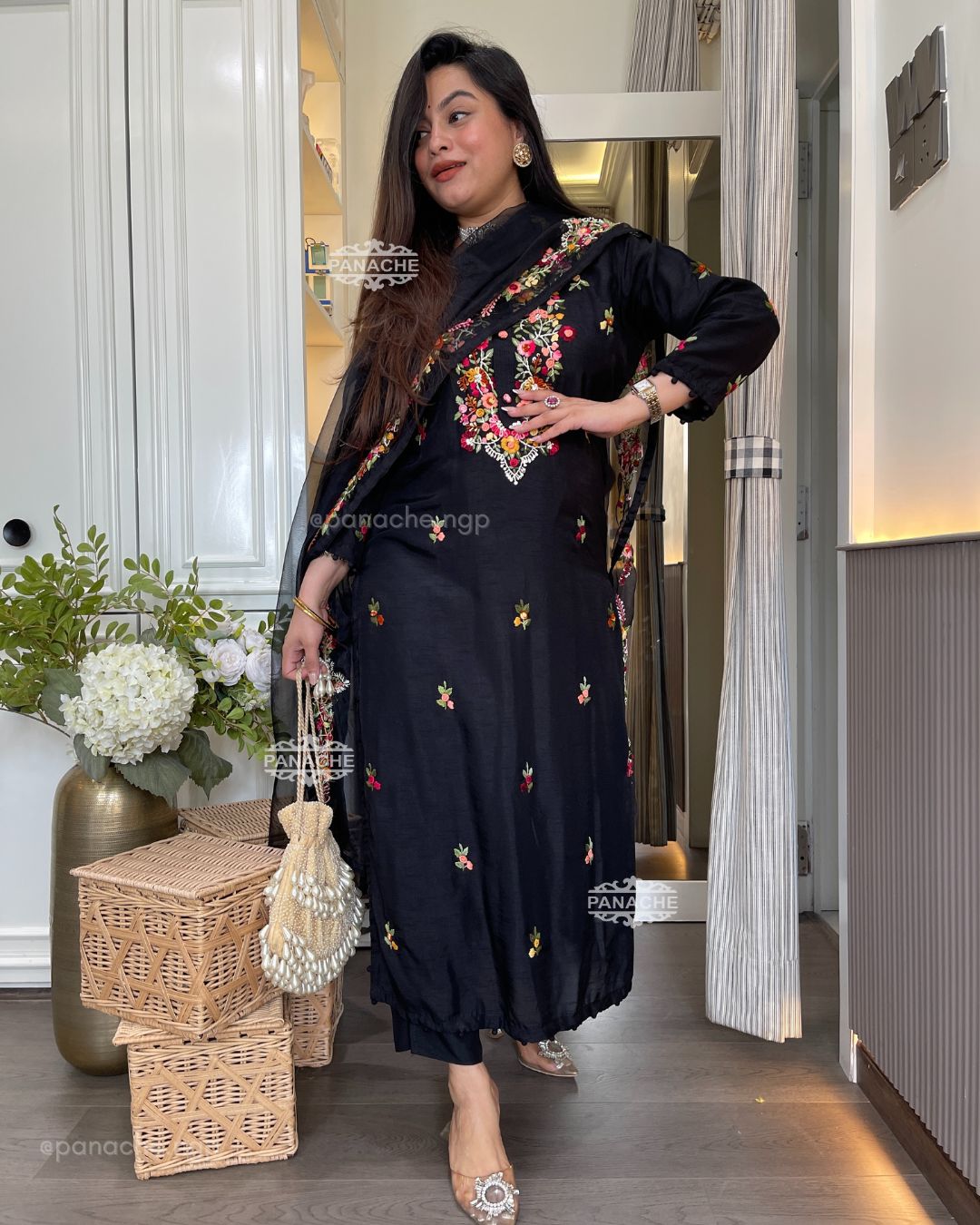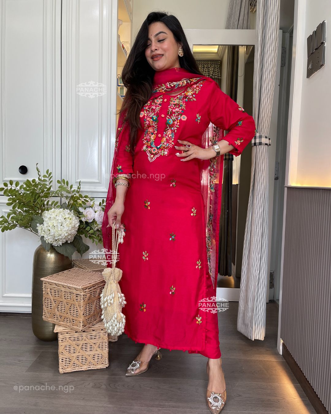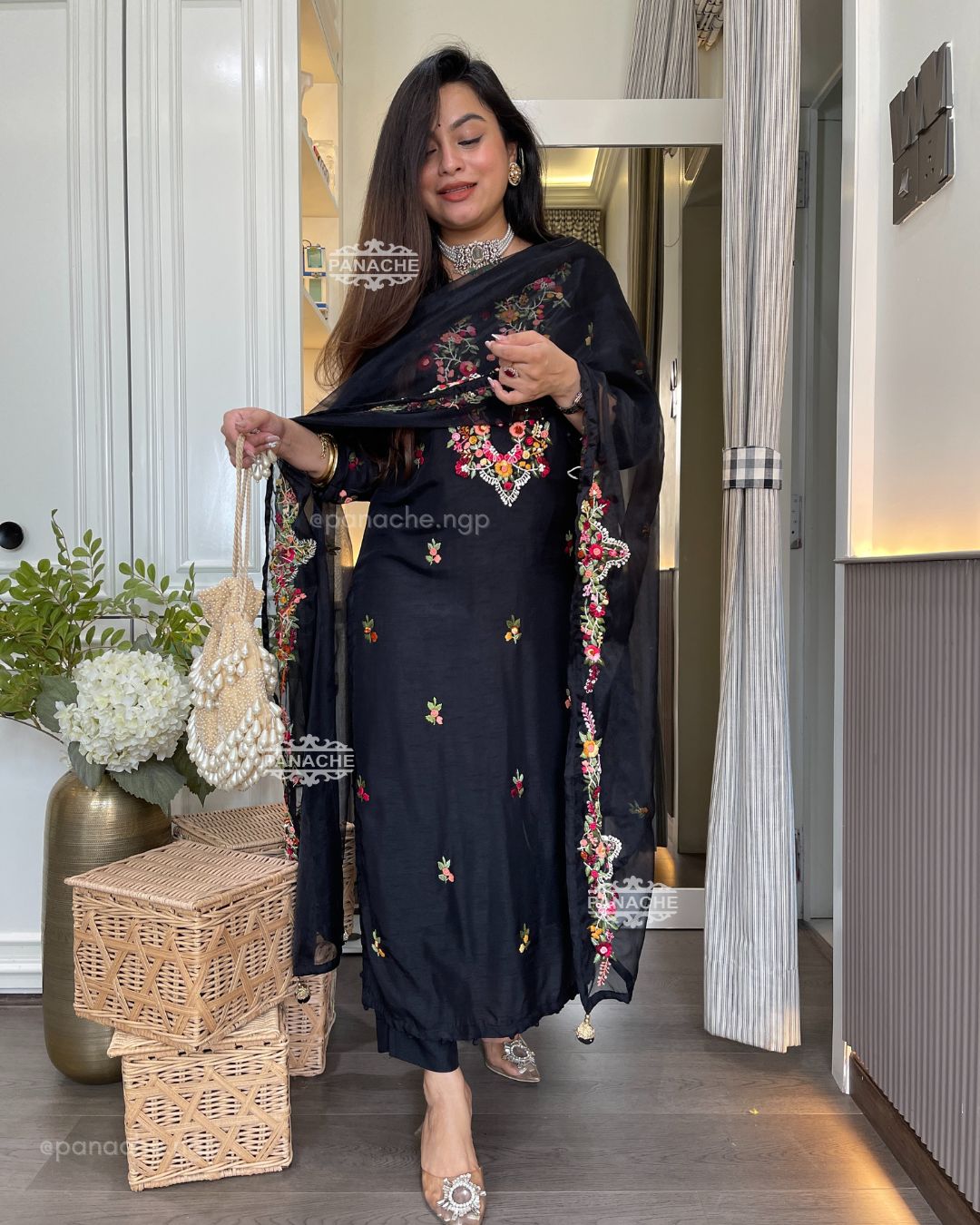 🟣 Frenchknott embroidery on kurta with side tassels and embroidery like garden on sleeves, heavy dupatta with buttas all over kurta
