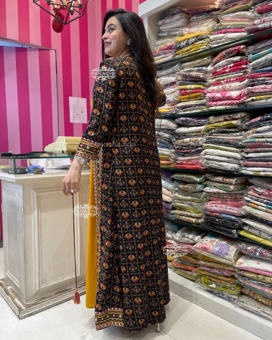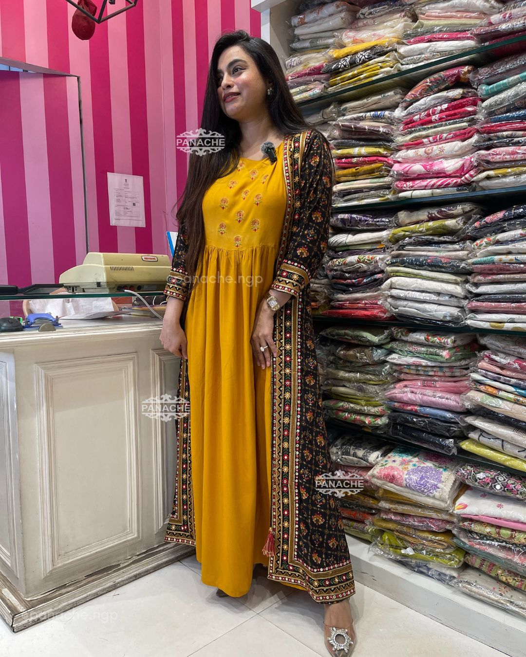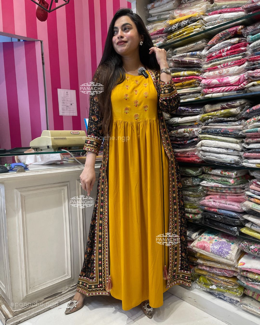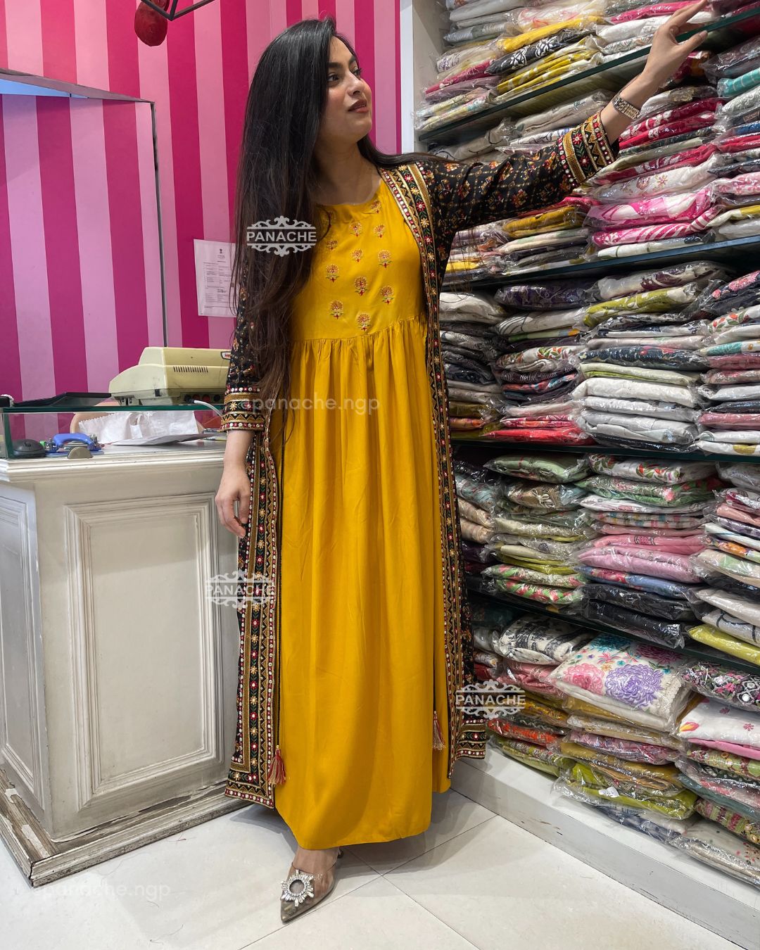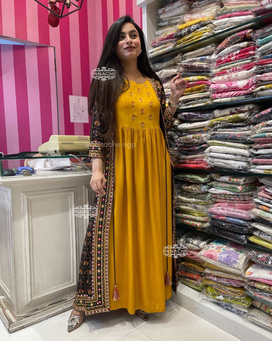 🟣 Sleeveless inner wihh embroidery buttas on yolk and a long cape with embroidered sides giving it cute feels