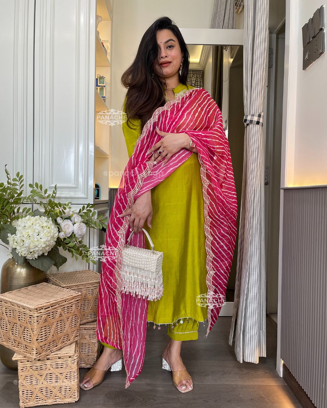 Mirror work leheriyan set