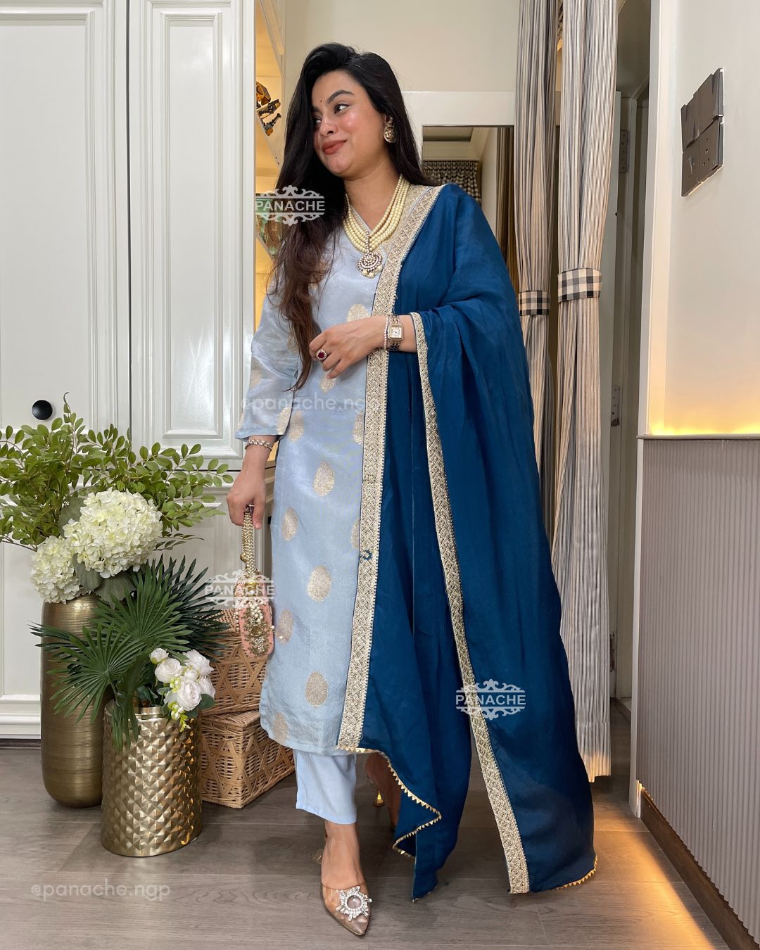 🟣 Zari neckline with self Banarasi chinnon kurta and the fabric is pure luxury