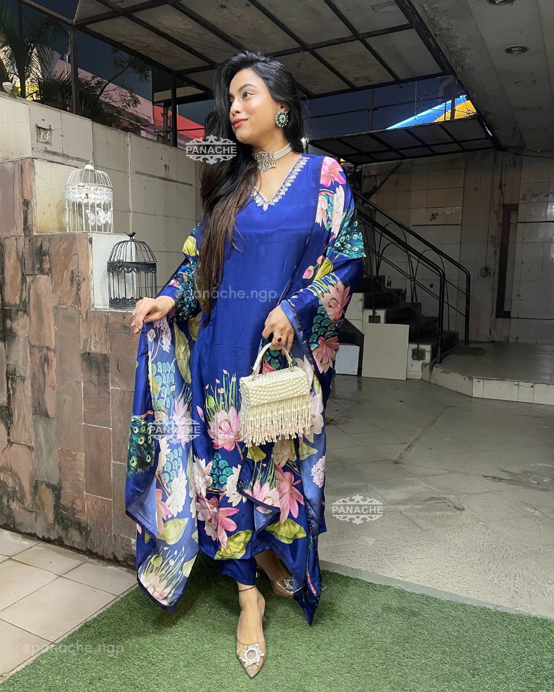 🟣 Pastel sequein neckline with handwork highlights on each flower on Daman and a full graceful floral dupatta